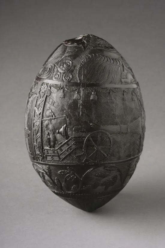 A Very Finely Carved 'Bugbear' Coconut with Scenes of a Native American Indian