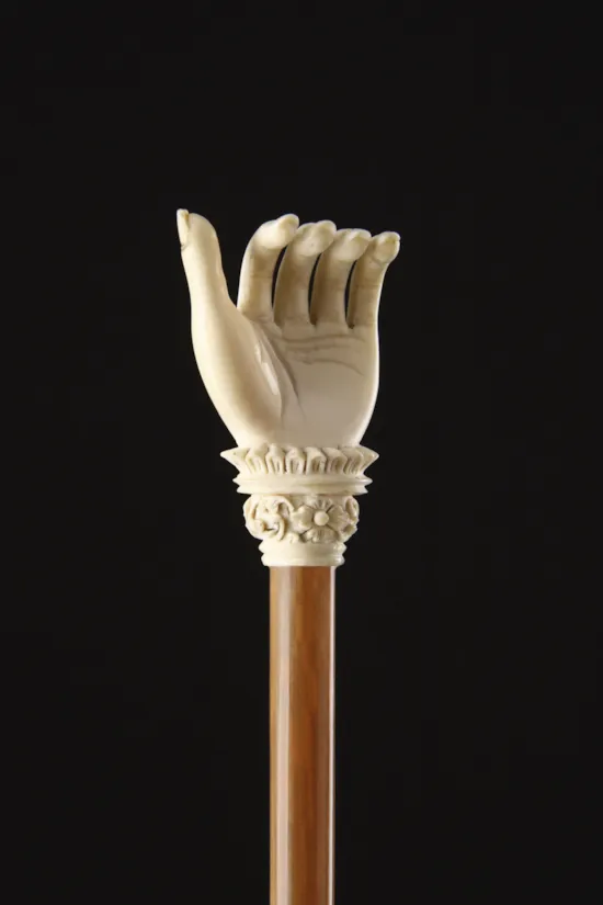 Indian Mughal Finely Carved Blonde Rhinoceros Horn and Ivory Back Scratcher