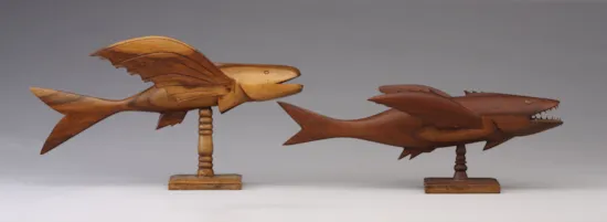 A Collection of Nineteen Carved Polynesian Miro Wood Pitcairn Flying Fish