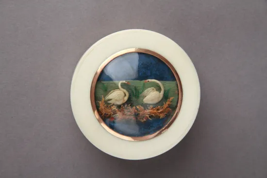 English Regency Turned Ivory Box Mounted with a Scene of Swans