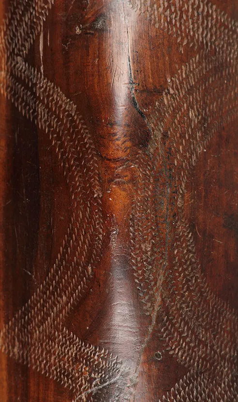 An Australian New South Wales Aboriginal Wedge Shaped Parrying Shield Decorated with Abstract Emu Bird Tracks to both sides