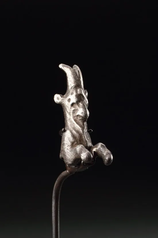 An Ancient Roman Silver Figure of a Rearing Horned Goat the Finial of a Ladies hair pin