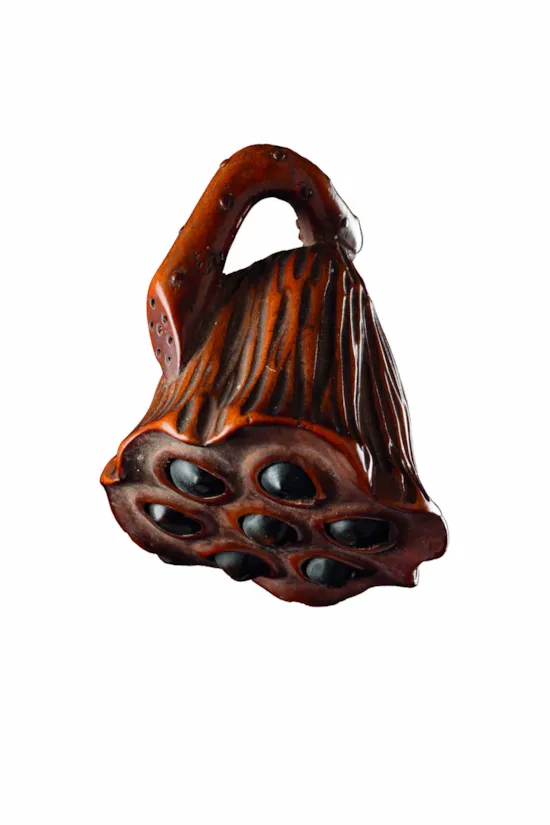Japanese Naturalistically Carved Boxwood Model of a Lotus Fruit