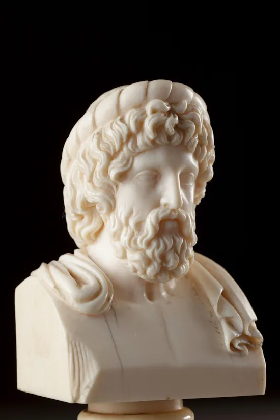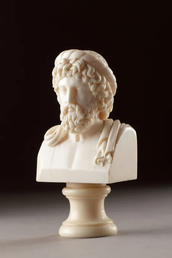 English Regency ‘After the Antique’ Carved Ivory Portrait Busts of the Ancient Classical Philosophers Plato and Aristotle