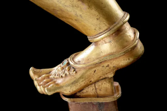 A Large Tibetan Gilt Copper Dancing ‘Left’ Female Lower Leg