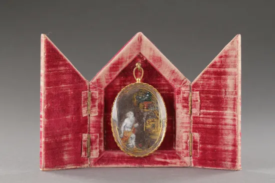 The ‘verre eglimisé’ decorated rock crystal painted with a scene of St Peter praying before Christ upon the Cross