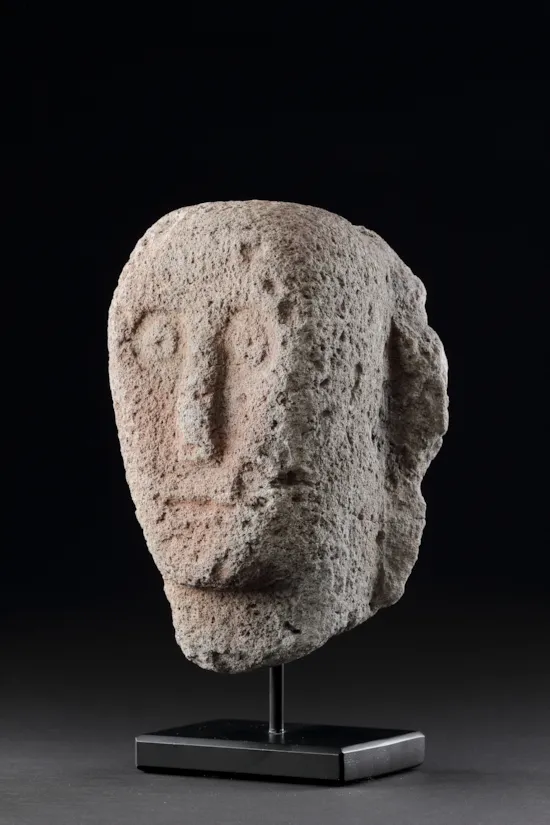 A Celtic Stone Head with ‘Staring’ Eyes, Long Nose and Slit Mouth